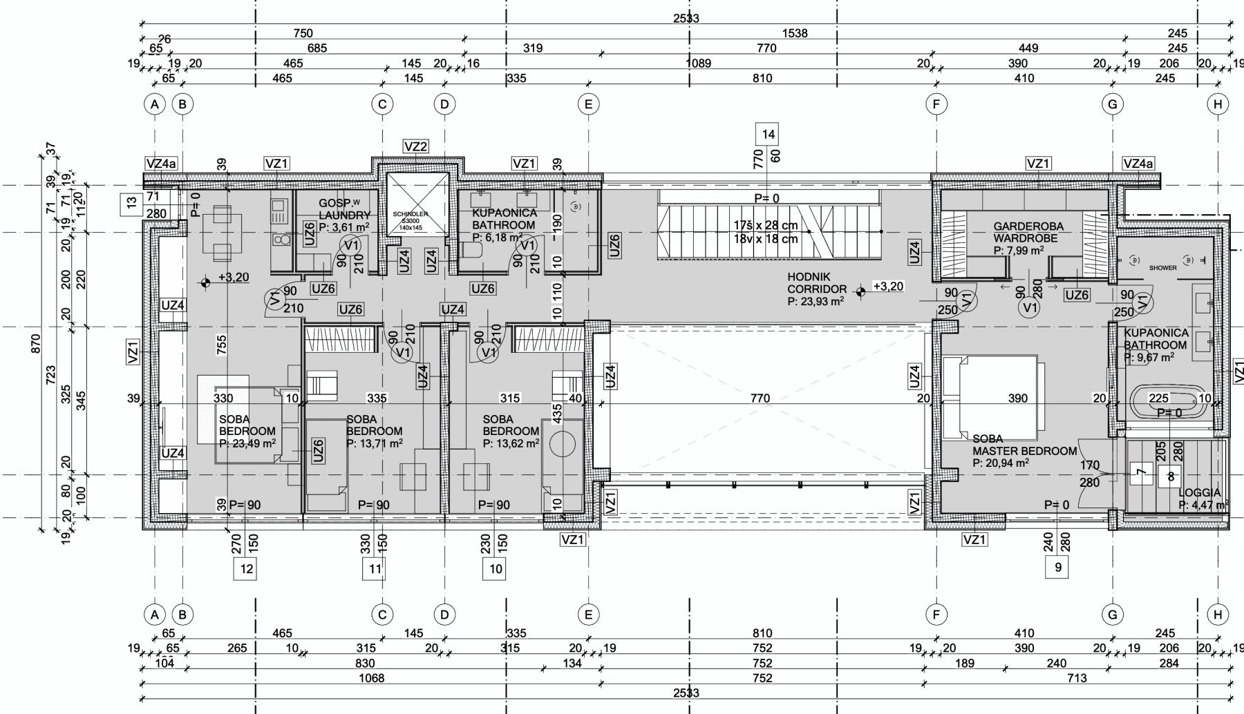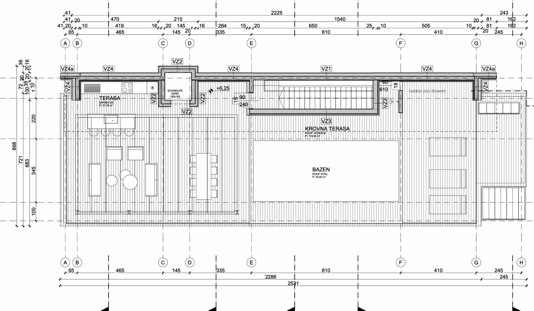 Vila je projektirana za visoku razinu modernog stanovanja, s jasnim razdvajanjem dnevnog i privatnog dijela, elegantnim arhitektonskim linijama, izvrsnom funkcionalnošću prostora i obiljem prirodnog svjetla. Neto korisna površina od približno 187 m2 raspoređena je na tri etaže.