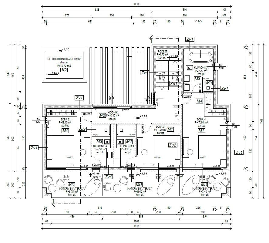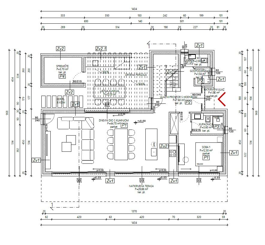 Villa 1 - ground floor + first floor - total net area 191 m2 (4 bedrooms + 4 bathrooms + WC) + pool with sunbathing area + summer kitchen + covered terraces + 2 parking spaces = 800,000 EUR
